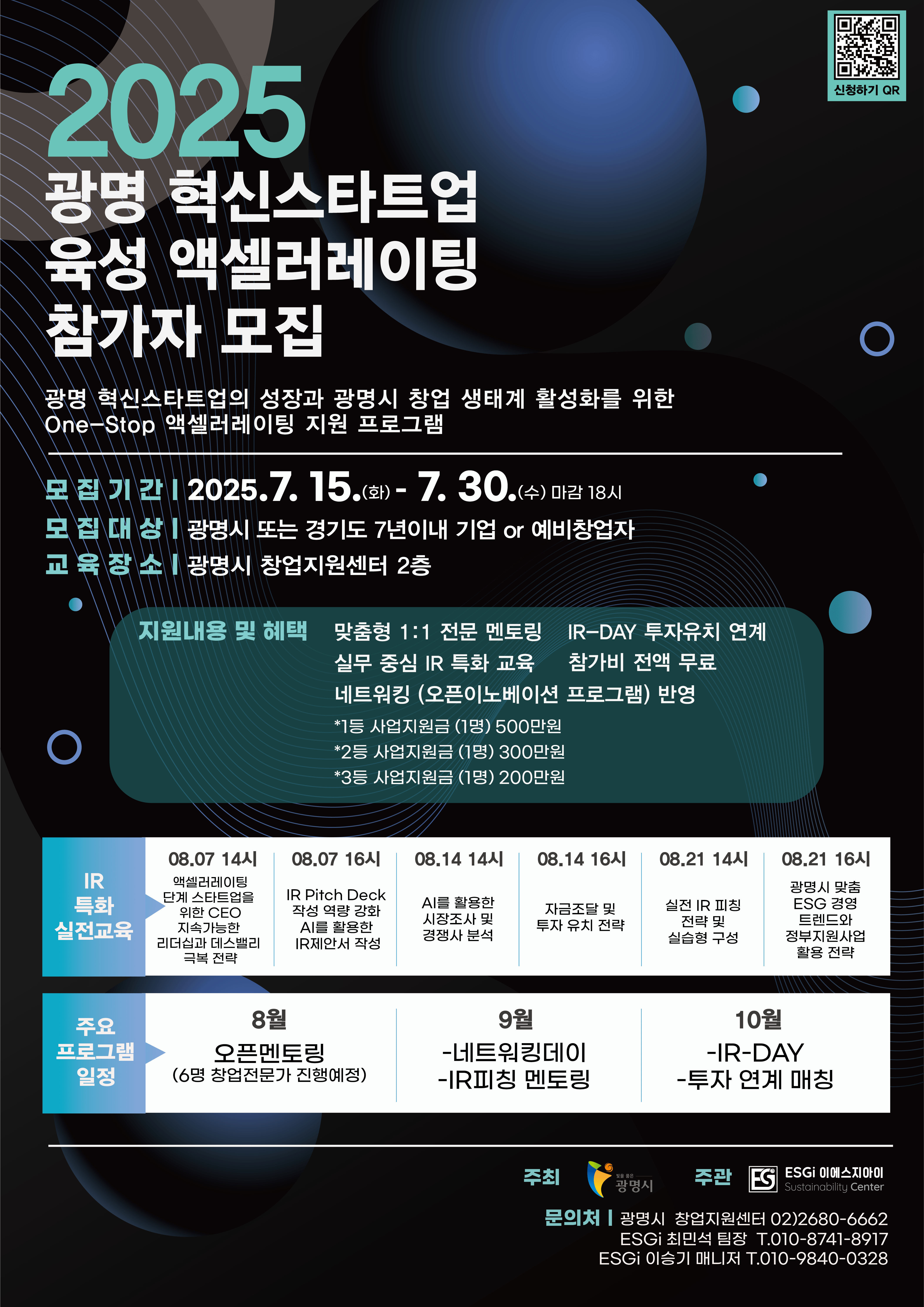 모집대상 : 광명시 창업 7년 이내 스타트업 또는 예비창업자 20개팀