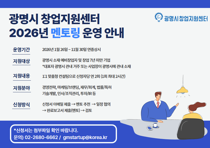 지원대상 : 광명시 소재 예비창업자 및 창업 7년 미만 기업